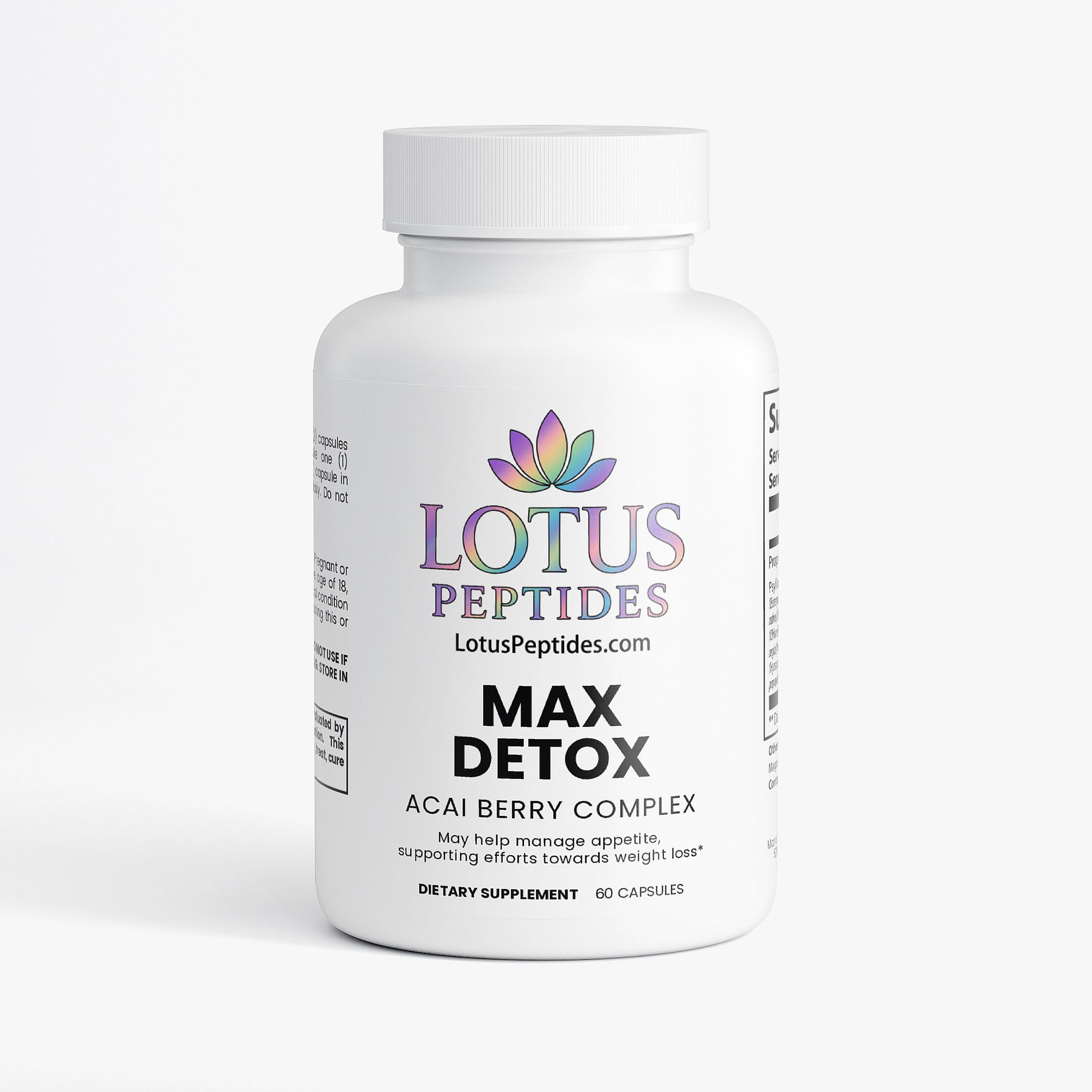The benefits of cleansing are no longer exclusive to spa enthusiasts. People recognize the importance of cleansing their bodies to maintain a healthy lifestyle. Max Detox is a dietary supplement that combines a range of carefully selected natural ingredients, each traditionally incorporated for its unique properties. This blend includes Psyllium Powder, which is a source of fiber, and Acai Berry Extract, known for its use in various traditional nutritional practices. Chlorella, a type of green algae, contributes its own unique nutrient profile to the formula. Additionally, Slippery Elm Bark and Aloe Ferox Powder are included for their historical use in herbal preparations. The formulation also contains Black Walnut Hulls, Ginger Root, and Papaya Fruit Powder, ingredients often used in traditional diets for their diverse culinary properties. Hyssop Leaf and Lycopene, derived from tomatoes, are also part of this diverse blend, encapsulated in a vegetable capsule suitable for vegetarians.*